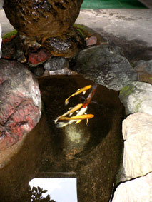 | 武甲酒造店舗横お手洗い前の池には、埼玉県より頂いたヒレナガニシキゴイがいます。 この鯉は、天皇陛下が皇太子時代に、埼玉県水産試験場(現在の埼玉県農林総合研究センター水産支所)を御訪問の際、インドネシアのヒレの長い鯉の特徴を錦鯉に取り入れてはどうかとの御提案を受けて、同試験場が埼玉県の錦鯉と交配させて、昭和57年に作り出した品種です。これまでに、皇居二の丸の池などに放流されております。「彩の国さいたま」の観賞魚です。 |